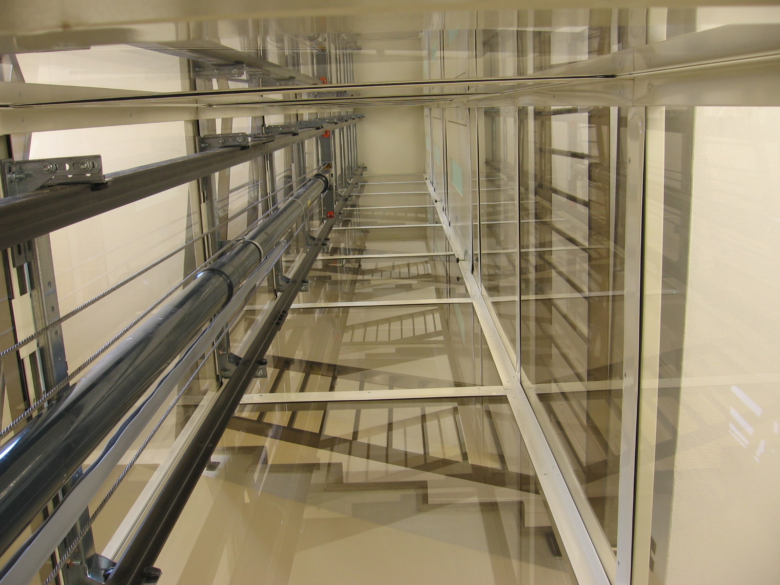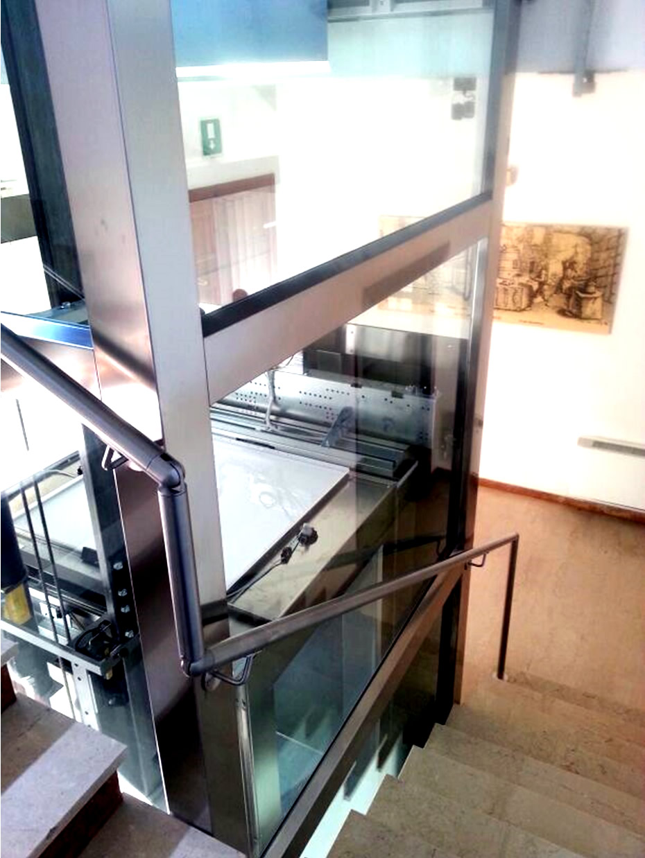 Vano Ascensore in Vetro è una tipologia dove il vano viene realizzato da una struttura in acciaio, rivestita da lastre in vetro antisfondamento a scelta fra azzurrato, riflettente o neutro.